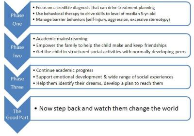 I’m not a proselyte of ABA. It fits into a larger package for me. For young children with autism, who have limited skill acquisition and significant behavioral barriers to learning, it does better than anything, as monotherapy. If the children are aggressive, medications can help. If they are school age and learning, medications sometimes also help, particularly if they are dysexecutive in neuropsychological testing. If they are above a five year old’s verbal level, I’m thinking about getting them into team sports, martial arts, theatre or dance, and I’m thinking about giving their parents tools to help them make and keep friends. I’m thinking about getting them in our Puzzle Partners informal social supports programs, once their teenagers. I’m thinking about getting them through college and into professions.