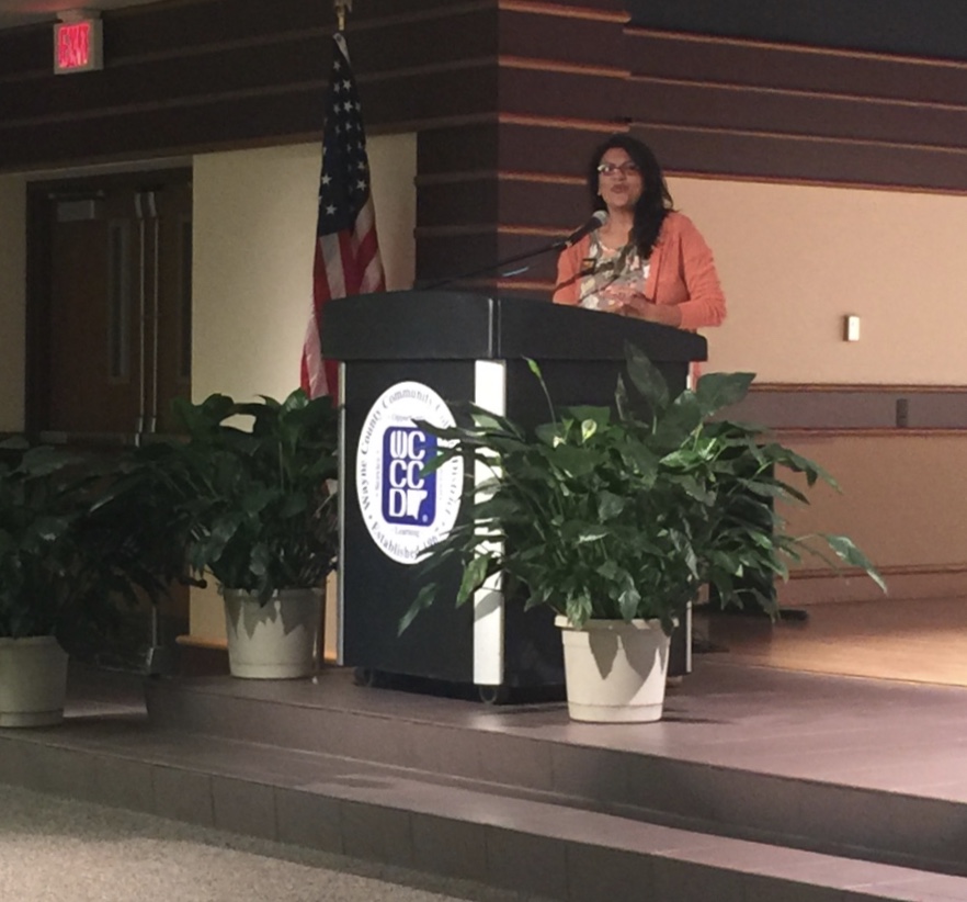 Rep. Christine Greig (D-Farmington Hills) speaking at a morning panel about women and the strength we bring to workforce development